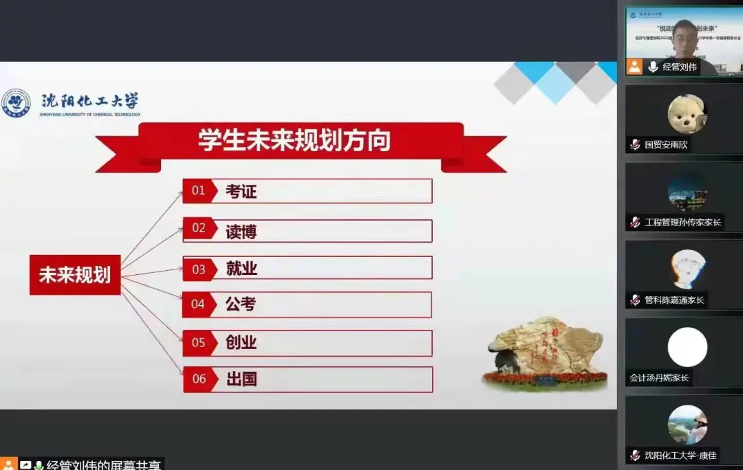 家长会前,辅导员张国平老师精心设计了家长会邀请函,并提前发送给家长,从PPT设计到设备的调试都进行了精心准备。张老师重点对学业、学情进行了分析,尤其是学院后进生的转化工作,并对学业预警政策进行详细解读,目的就是不让一个孩子掉队。她从德智体美劳五个方面向家长图文并茂地进行介绍,希望学生利用学校、学院提供的多彩锻炼平台充分展示和锻炼自己。她全面介绍了各项科创赛事,希望激发学生参赛积极性,通过“学校+家长”共同努力,促进学生能力的提升。针对未来规划等家长们最关心的热点问题,张老师与家长展开了沟通交流,虽然隔屏相望,但推心置腹、气氛热烈。此次家长会,进一步拉近了家校距离,建立了家长与学校在教育管理上的共识。