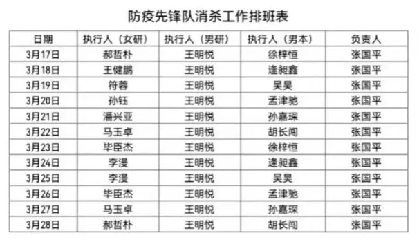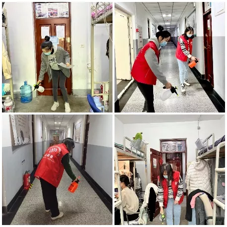 为了确保健康的生活环境,学校为各学院配备了消杀工具。经管师生志愿先锋队主动承担寝室的每日消杀工作,按照排班表对每个寝室每天定时定点进行通风、消毒、每日测温等工作,实时开展一对一排查,为学生健康提供保障。
